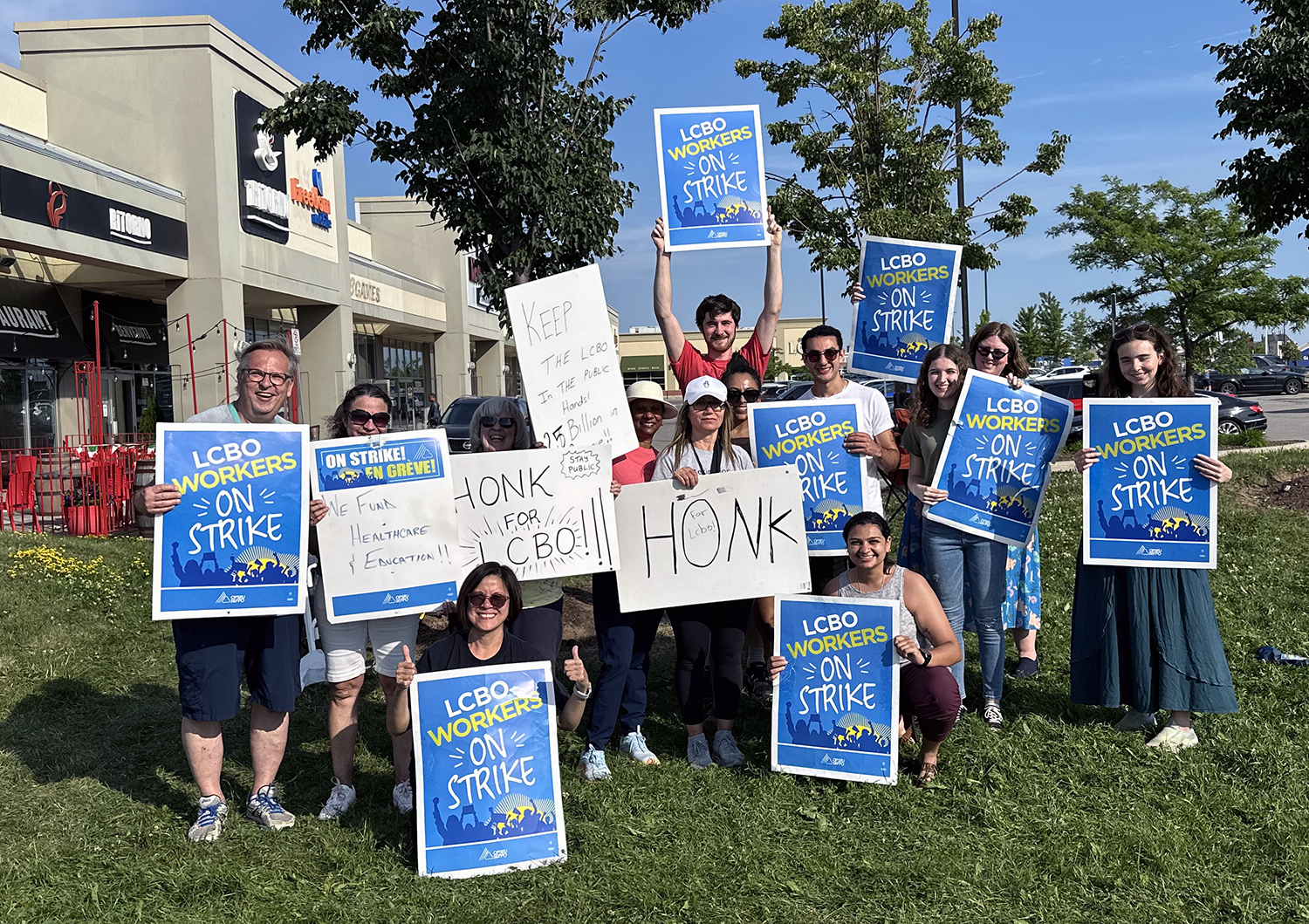 In July 2024, we joined LCBO workers on the picket line at Dundas and Trafalgar on several occasions to show solidarity with the 10,000 OPSEU-represented members on strike.
