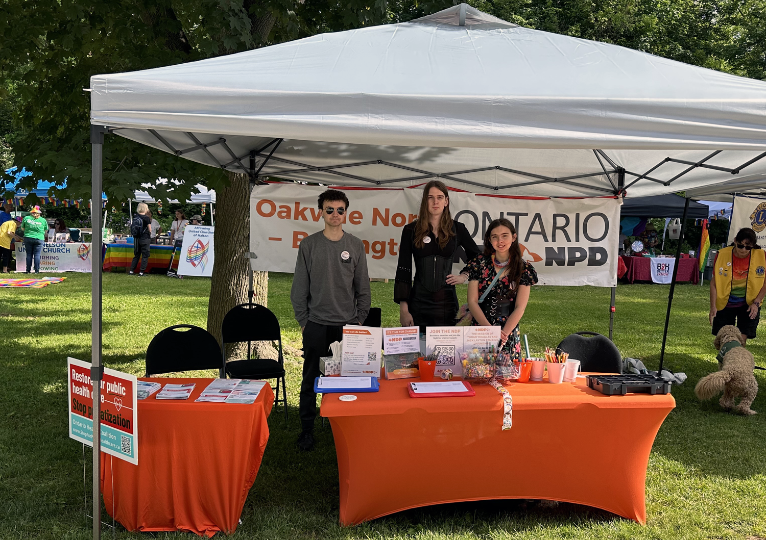 On June 1, we were at Halton Pride Fest ’24 with our button making supplies. We were also collecting signatures calling on the federal government to defend trans rights in Canada.